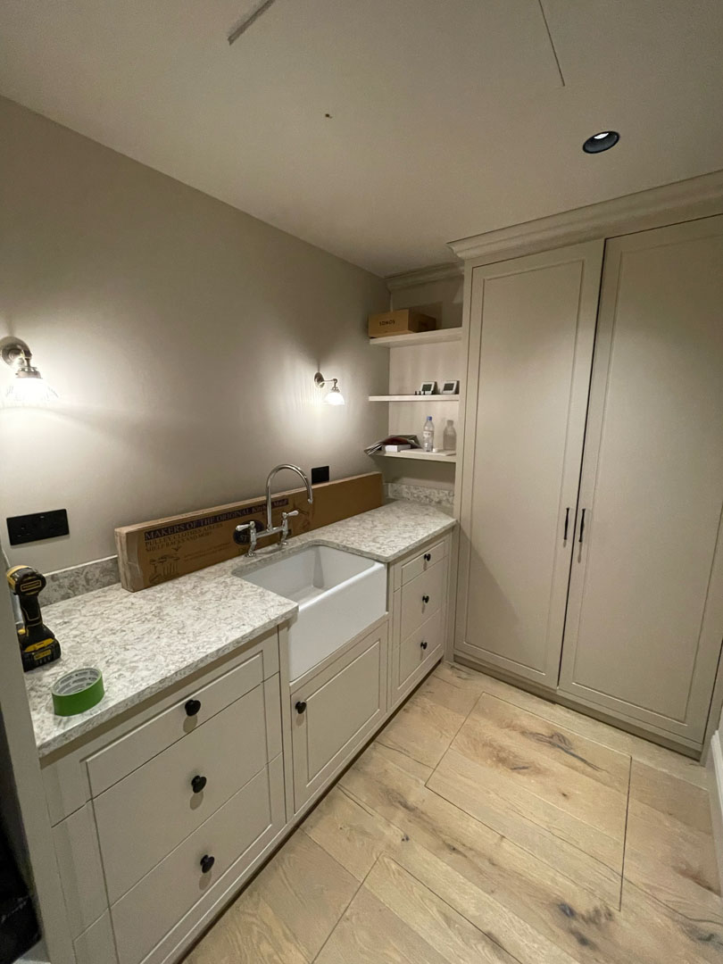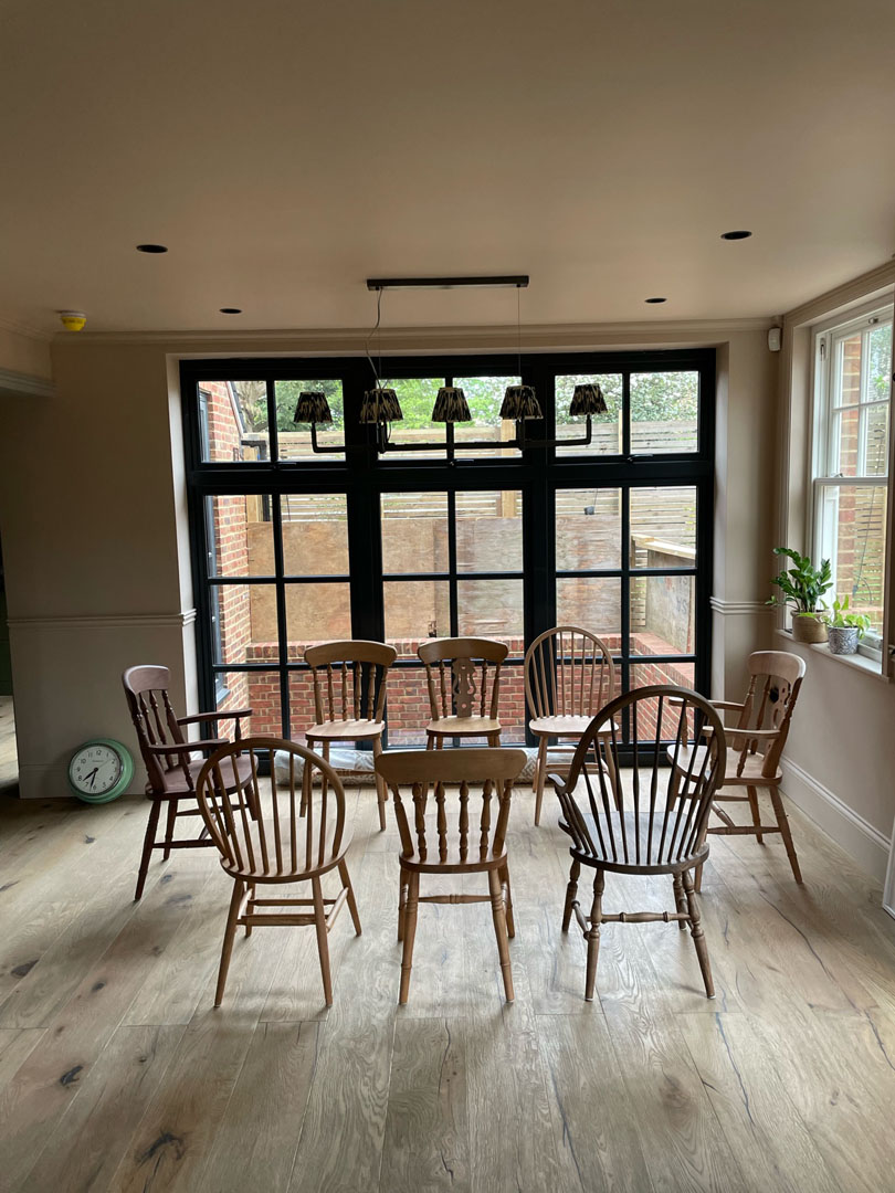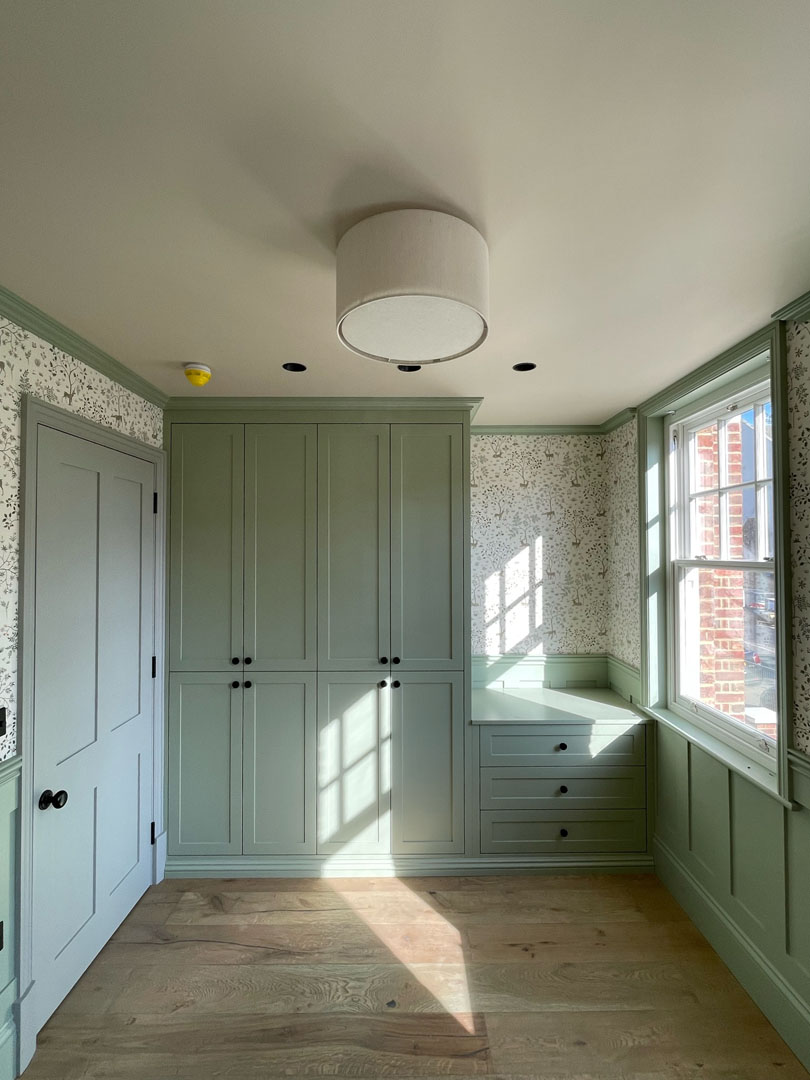 - Bespoke Kitchen: Installation of a handcrafted kitchen by Higham Furniture, acting as the ground floor’s focal point.